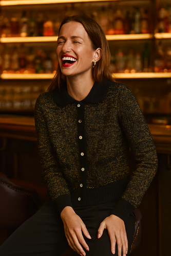 Cashmere Mix Lurex Cardigan with Collar Black / Gold