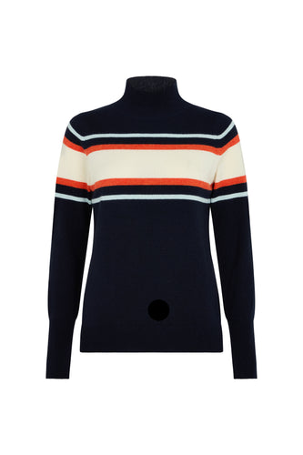 Cashmere Mix Navy, Orange and Cream Stripe High Neck Jumper