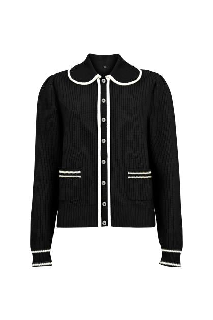 Cashmere Mix Cardigan with Collar Navy / Light blue